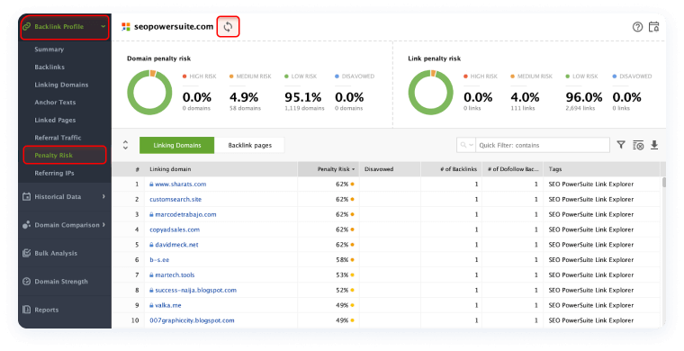 Now that you have all the info on your backlinks, you need to filter out those that are potentially harmful and get rid of them. As a rule, links that have a risk value ranging from 0 to 70% are safe. Those of 70% and higher penalty risk are harmful and can damage your site reputation.