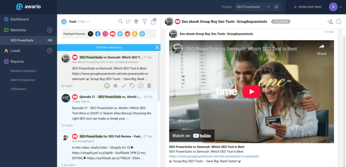 This is where a monitoring tool like Awario becomes useful — not as a branding dashboard, but as a way to surface information you otherwise wouldn’t see. It allows teams to track when their brand, products, or key pages are referenced across the web and, more importantly, to understand the context of those references.