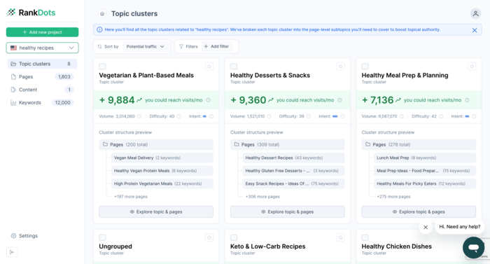 After that, RankDots will start collecting all relevant keywords and automatically group them into structured topic clusters using powerful AI.