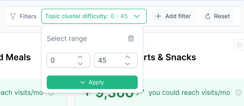 At this step, we’ll refine the keyword list by applying smart filters to remove high-difficulty, low-search-volume terms to surface the hidden gems that can drive real traffic.