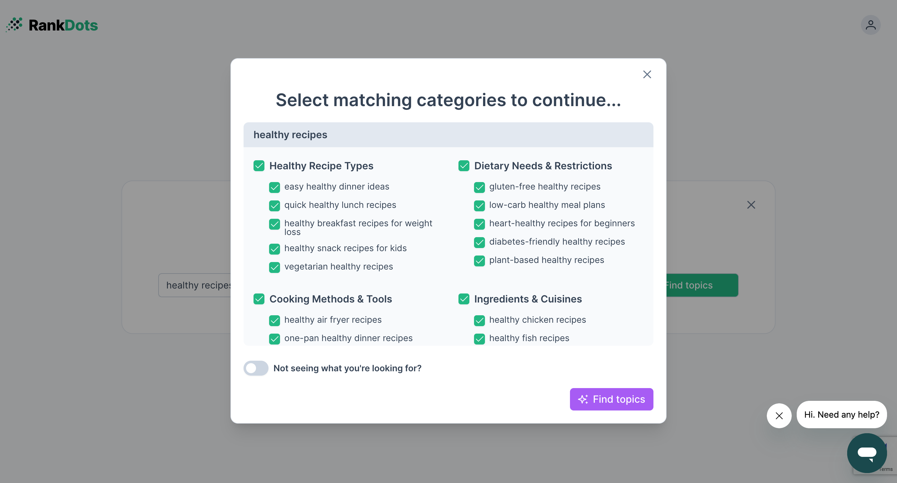 Once you hit Find topics, you’ll be asked to specify your topic.