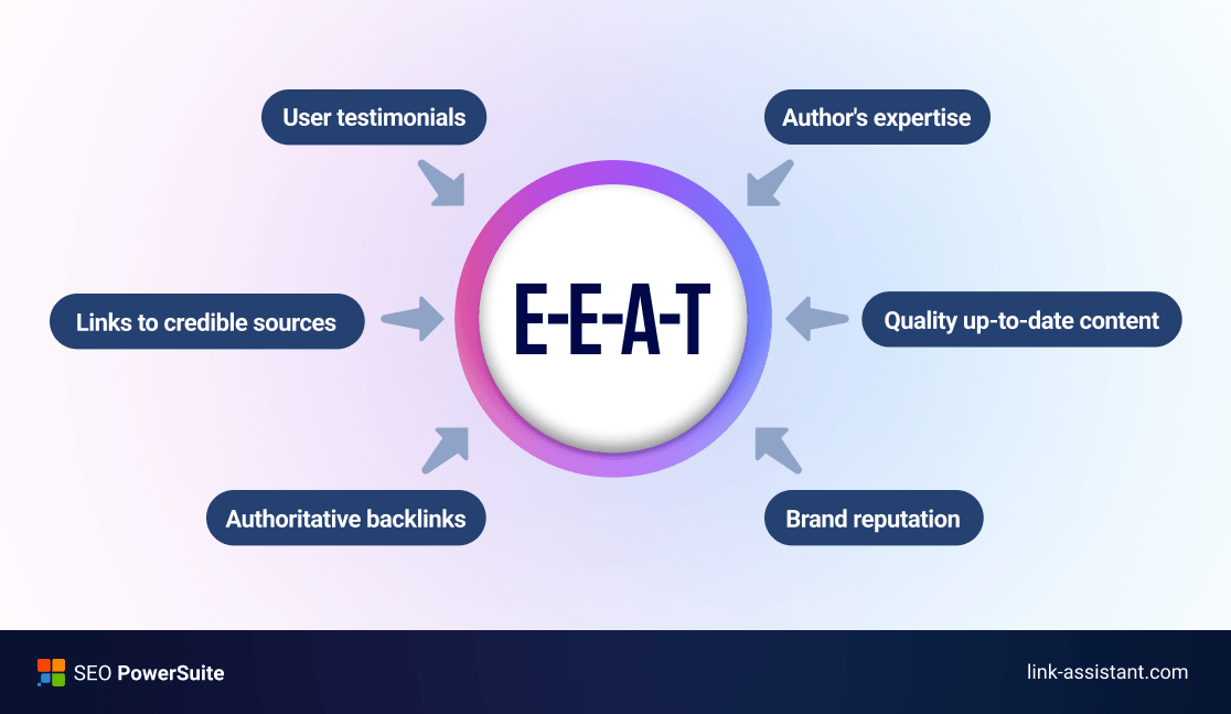 On-page signals (internal linking, schema, and structured data) reinforce your site’s expertise for search engines.
